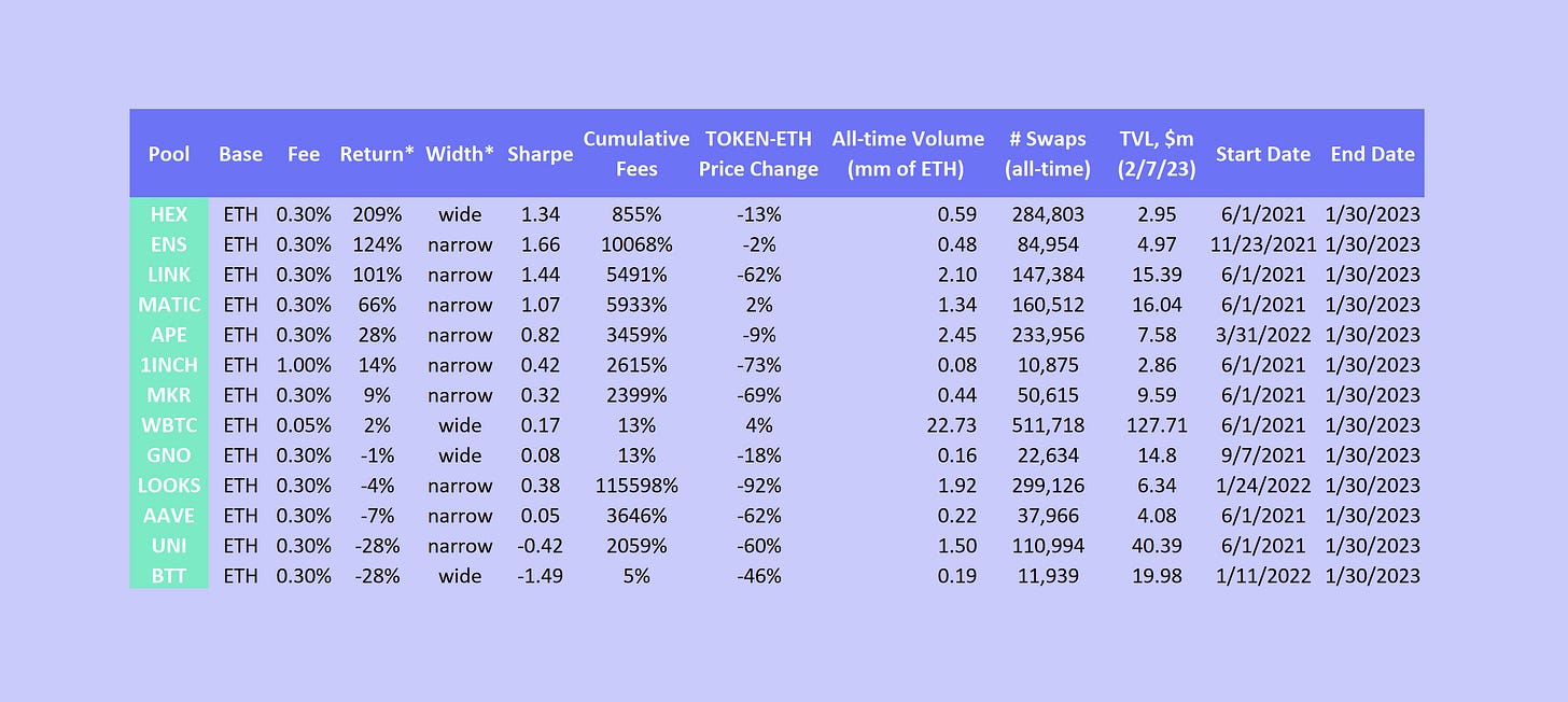 How some of the most popular Uniswap Pools fared when using this simple strategy