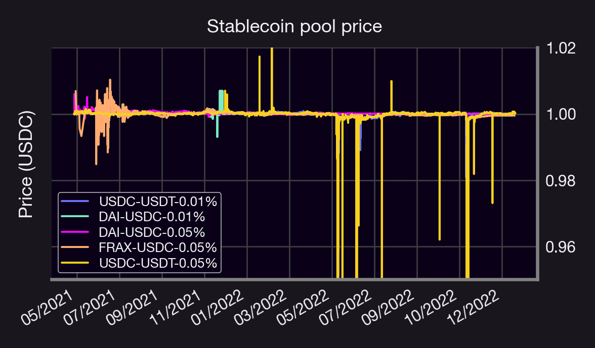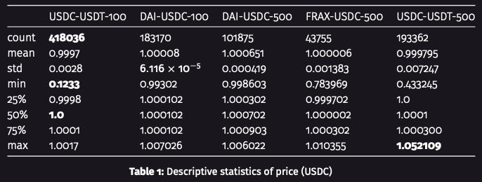 Exploring stablecoin pools on Uniswap v3 - price, volatility, correlation, and more...