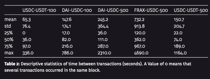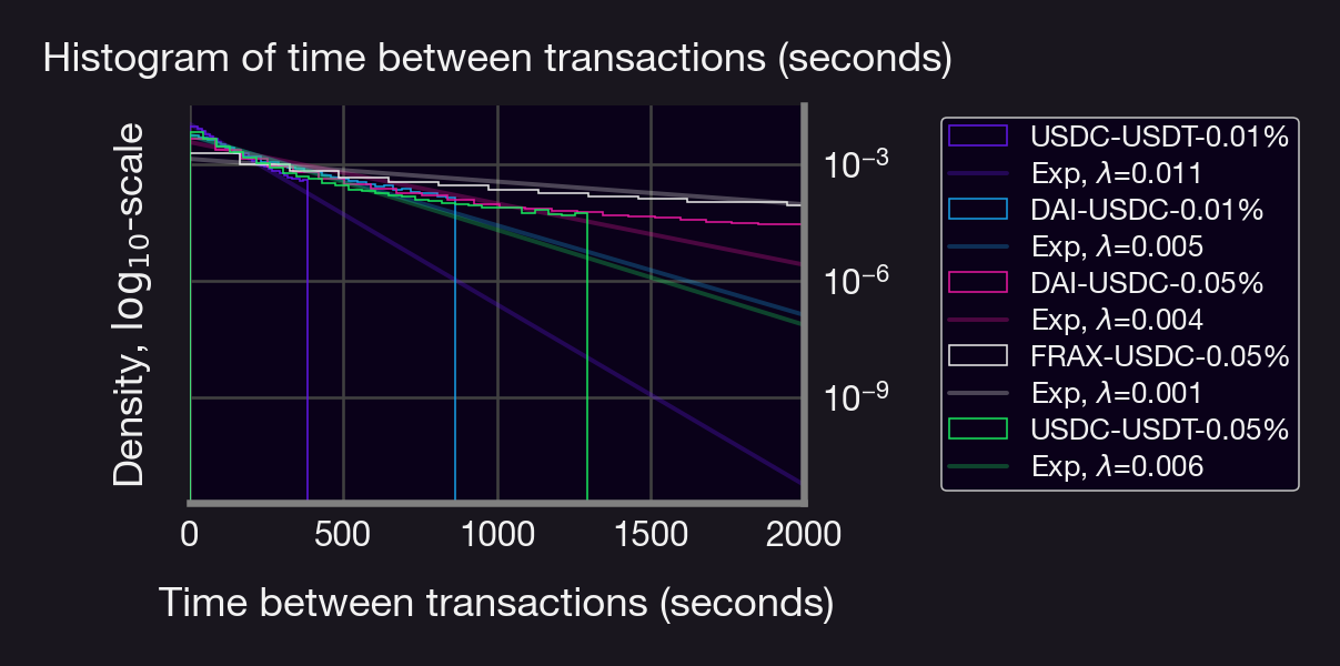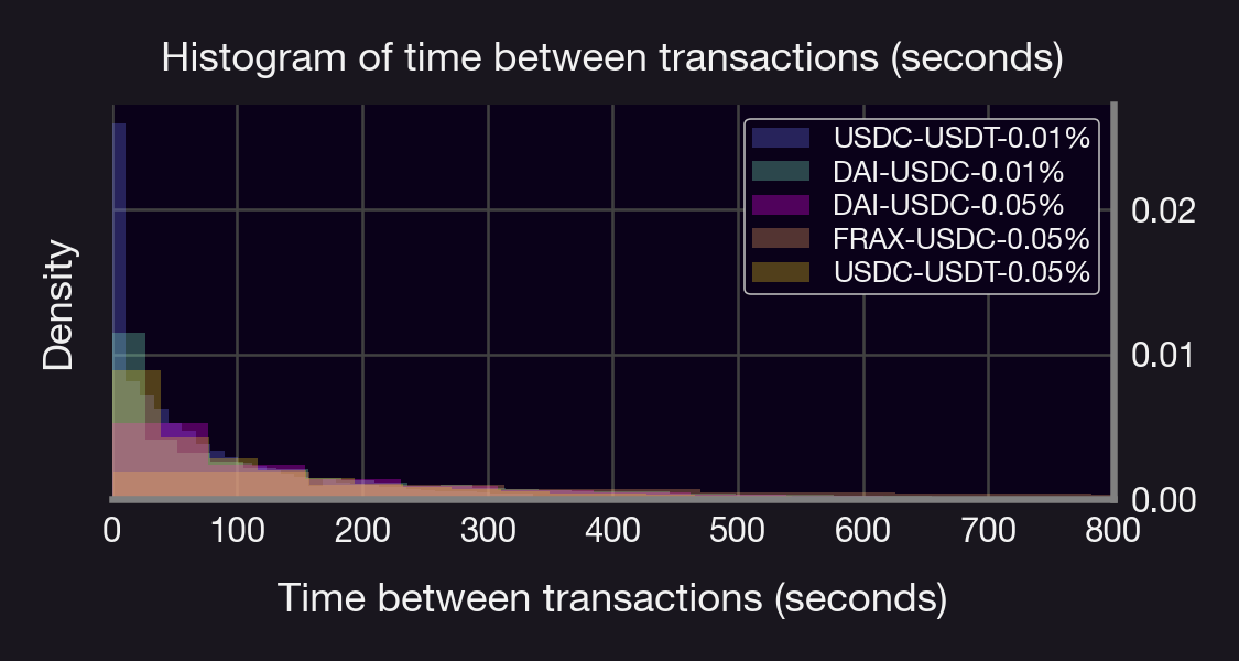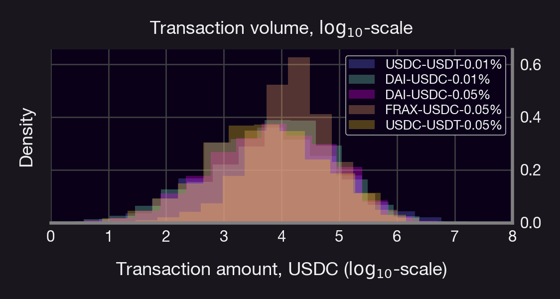 USDC-USDT (0.01%) is the busiest pool (~1 tx/min on avg)